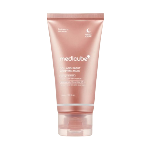 Medicube Collagen Night Wrapping Mask is a leave-on overnight treatment that forms a breathable “collagen wrap” over your skin to lock in moisture and active ingredients while you sleep. Infused with collagen extract, sodium hyaluronate (hyaluronic acid), niacinamide, and ceramide NP, it deeply hydrates, boosts skin elasticity, supports barrier repair, and helps smooth the appearance of fine lines. The formula dries into a thin, transparent film that adheres to your skin without transferring to your pillow, making it mess-free and effective for overnight use. In the morning, you can gently peel off the mask or rinse with lukewarm water to reveal plumper, more radiant skin.