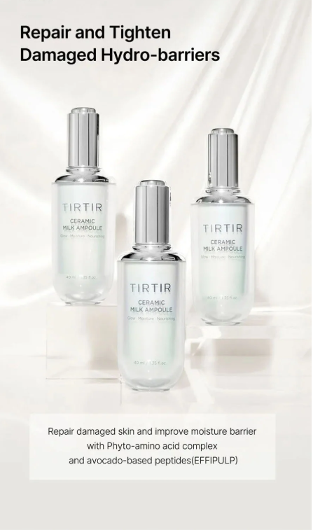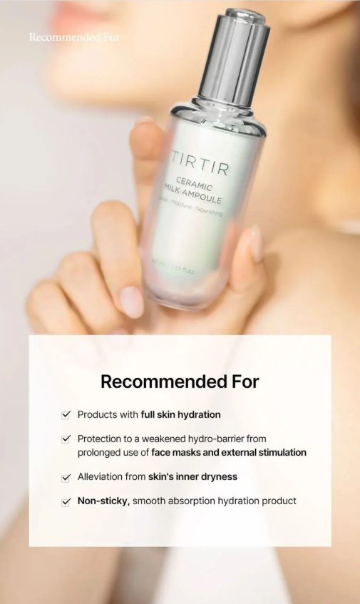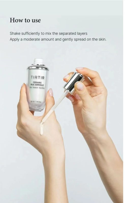 TIRTIR Ceramic Milk Ampoule is a deeply nourishing, skin-strengthening ampoule designed to deliver a plush, “ceramic-smooth” complexion with its rich blend of triple ceramides, vegan collagen, and milk protein extracts. This silky, milky formula intensely hydrates while reinforcing the skin barrier, helping to soothe sensitivity, reduce redness, and lock in long-lasting moisture. Enriched with niacinamide for brightening and tone correction, hyaluronic acid for plumpness, and nourishing plant oils to improve elasticity, it leaves the skin soft, supple, and naturally radiant. Its lightweight texture absorbs quickly without greasiness, making it ideal for dry, dehydrated, or compromised skin.